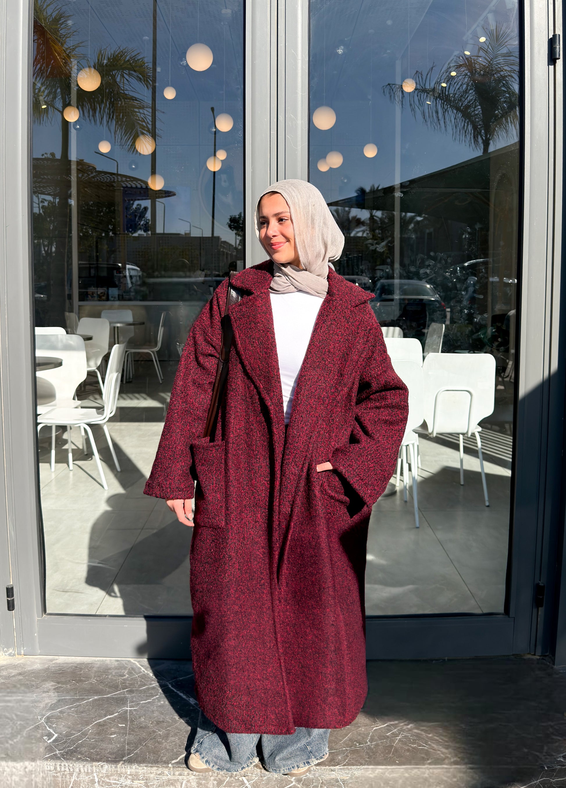 Fluffy Wrap Coat in Ruby Black
